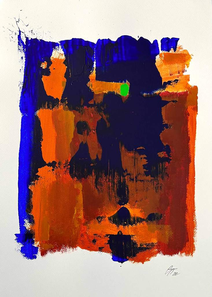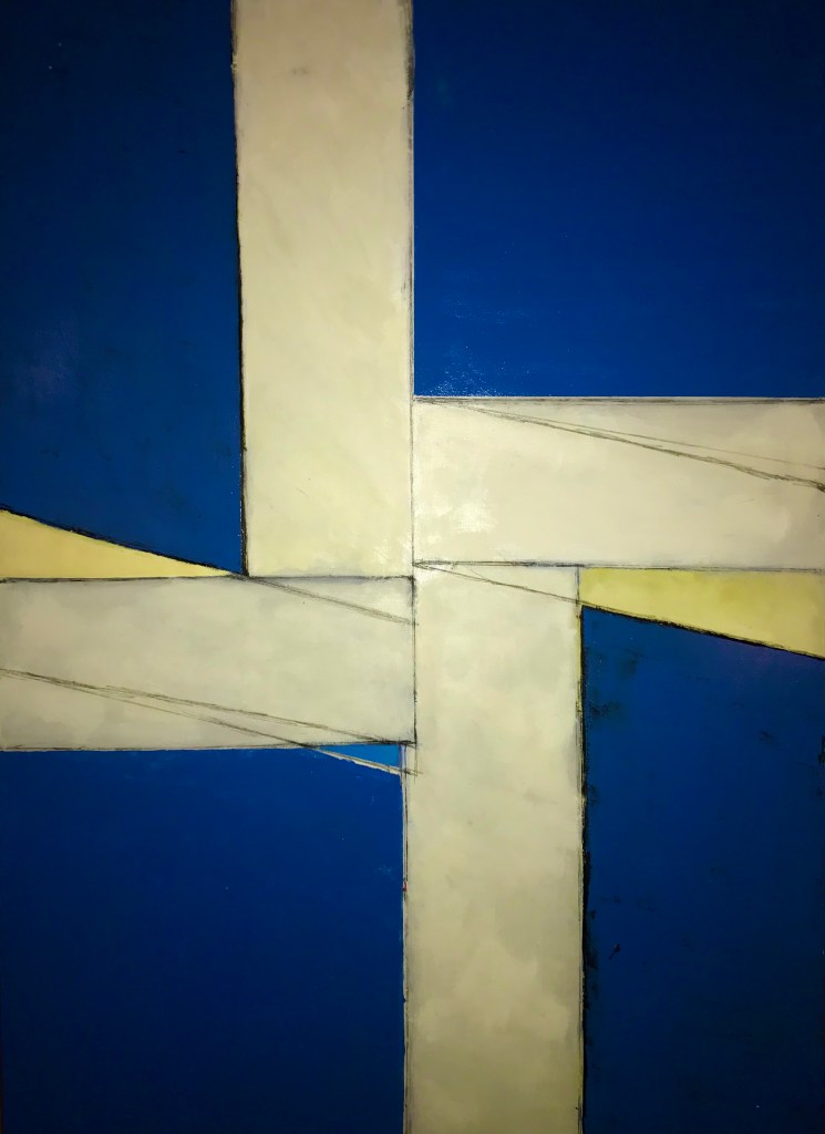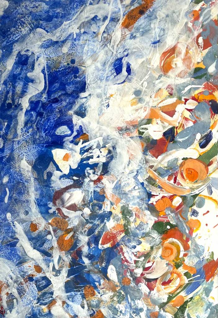 My abstract work is an act of discovery, independent of obvious references. I attempt to capture an event or mood through colour texture and design. I find it both demanding and rewarding to connect the patterns that are in my mind and convey them into visual form.
